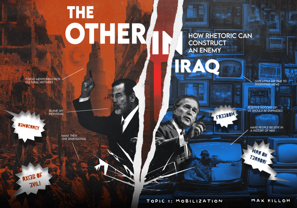 Within the field of political communications, the interplay of media narratives with public perceptions has long been a core focal point of study. Media narratives that sway public opinion can have a significant impact on the shaping of policies, outcomes, and the way history is recollected. Within this context, the tragic aftermath of the September 11th attacks and the sub-sequential Iraq War provide an interesting case study about these media narratives. This essay investigates how, in the wake of 9/11, language and rhetoric were used to otherize Muslims and those in Iraq, how this narrative of the other was cradled by media, and how this created a simplified, antithetical narrative which drew support for mobilization. Investigating this, it not only demonstrates how powerful media can be at molding public sentiment but also the ethical aspect of ensuring accurate information is disseminated during times of uncertainty and national tragedy.