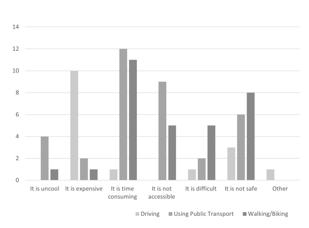 Other barriers preventing the target market from adopting this behaviour include a range of tangible and emotional barriers. The objective of this campaign is to recognise and reduce these barriers to change the social norm from driving to using sustainable transport options.
