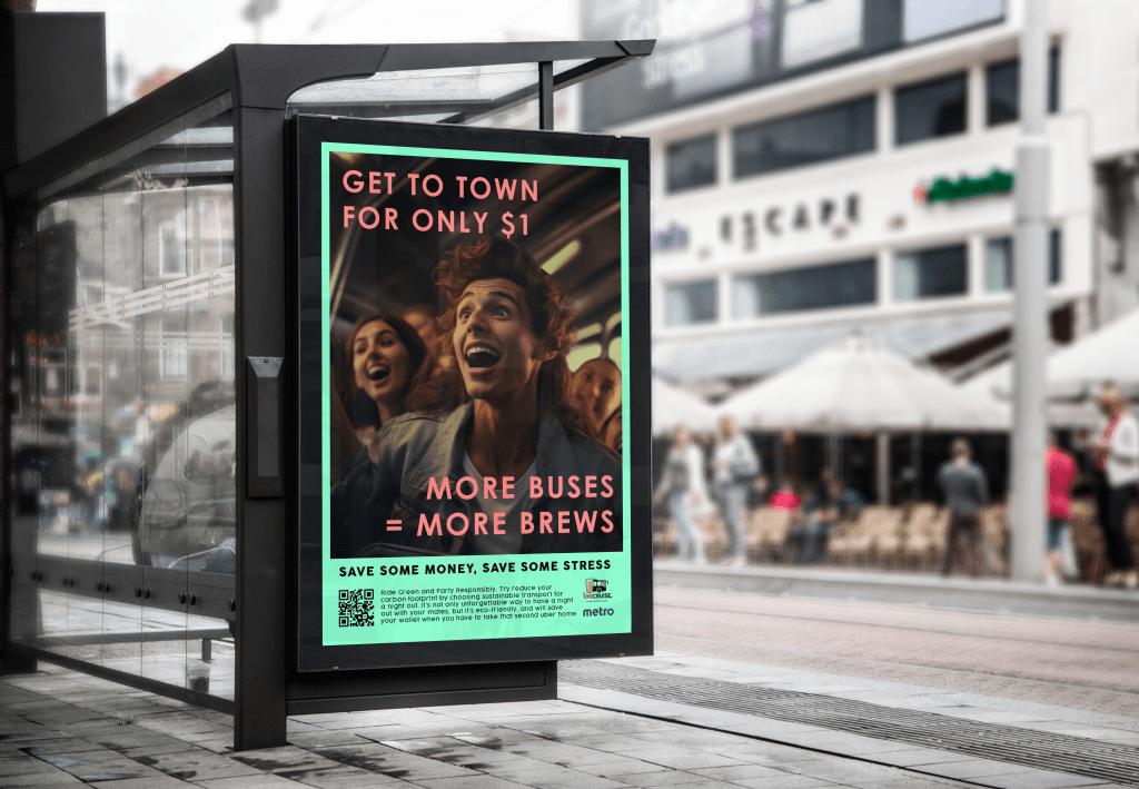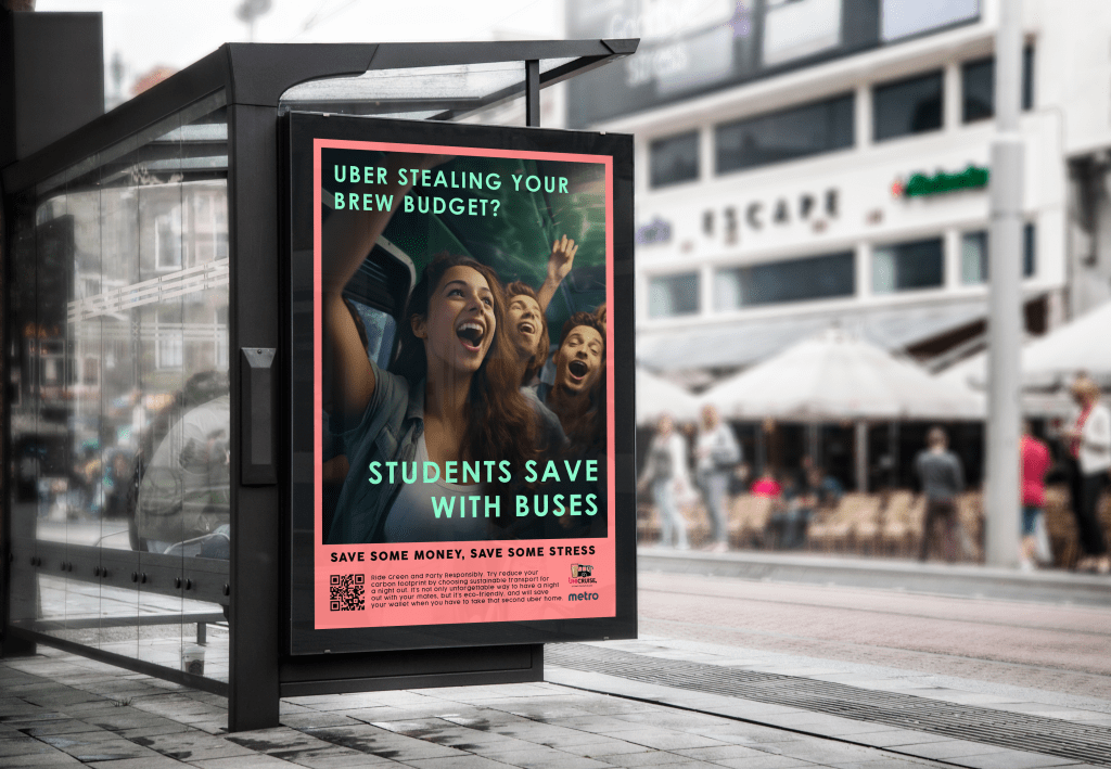 This will take them to student attended events, such as rugby games and local music festivals to encourage sustainable transport options rather than driving. It will also offer a one-way bus line to the CBD on Friday/Saturday nights from campus to encourage students to use public transport when going for a night out at bars, rather than taking an uber or rideshare. UniCruise will be offered to students for the three months this campaign is running, with the potential for the it to continue it after the campaign if uptake is successful.