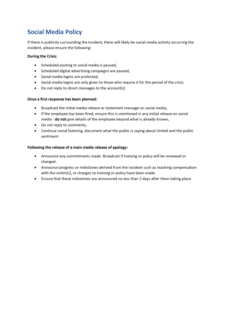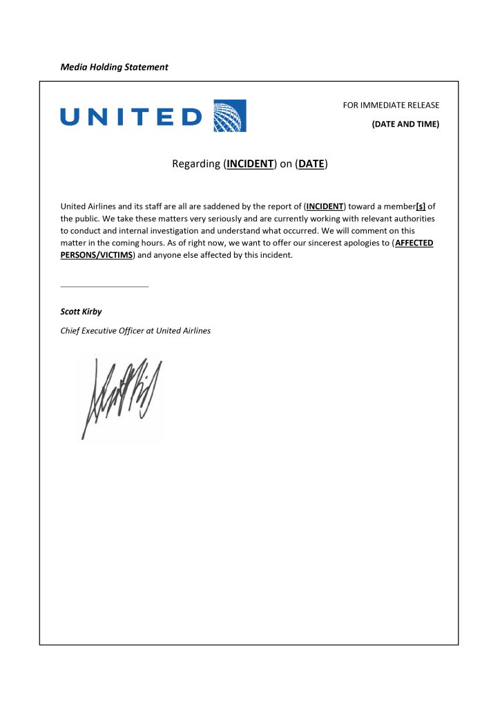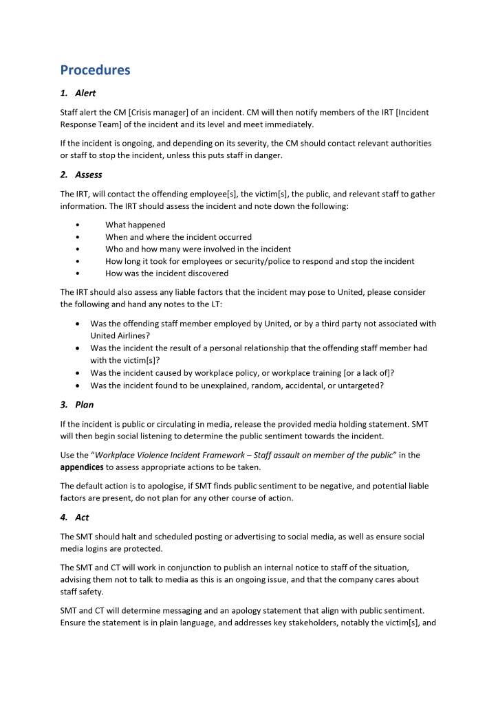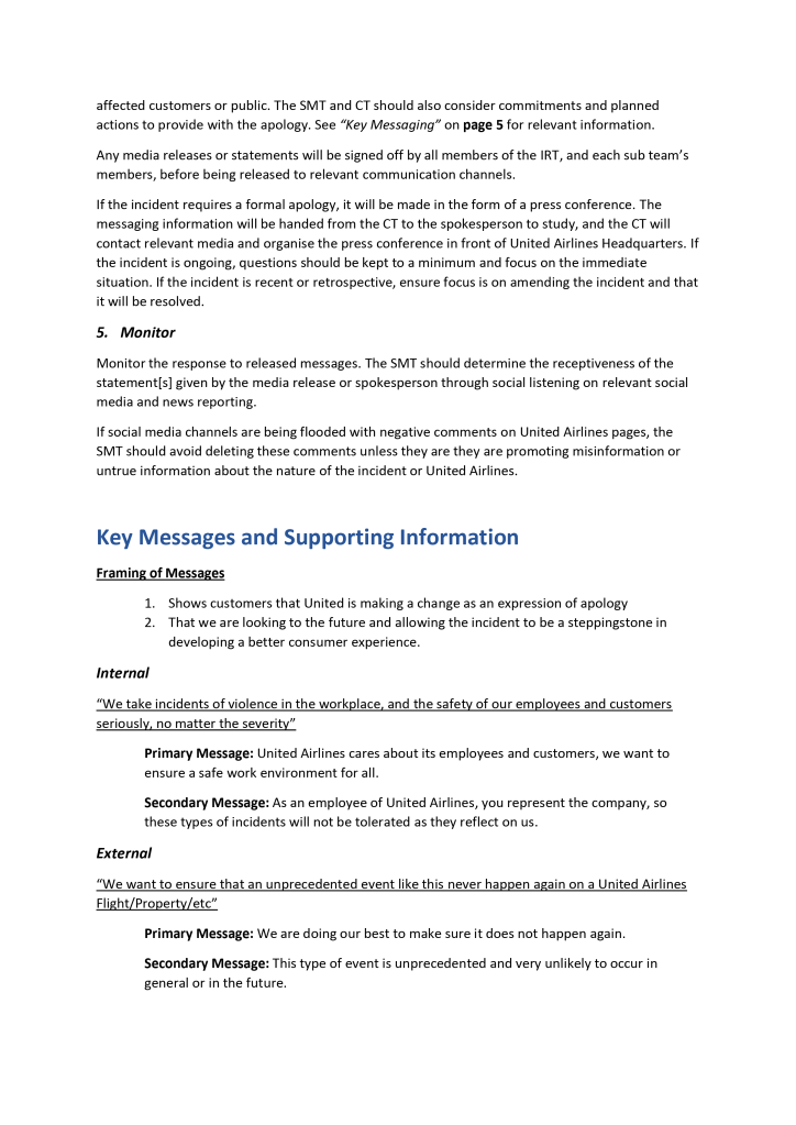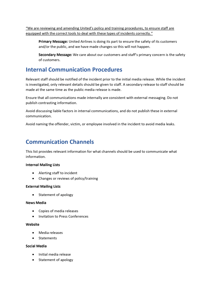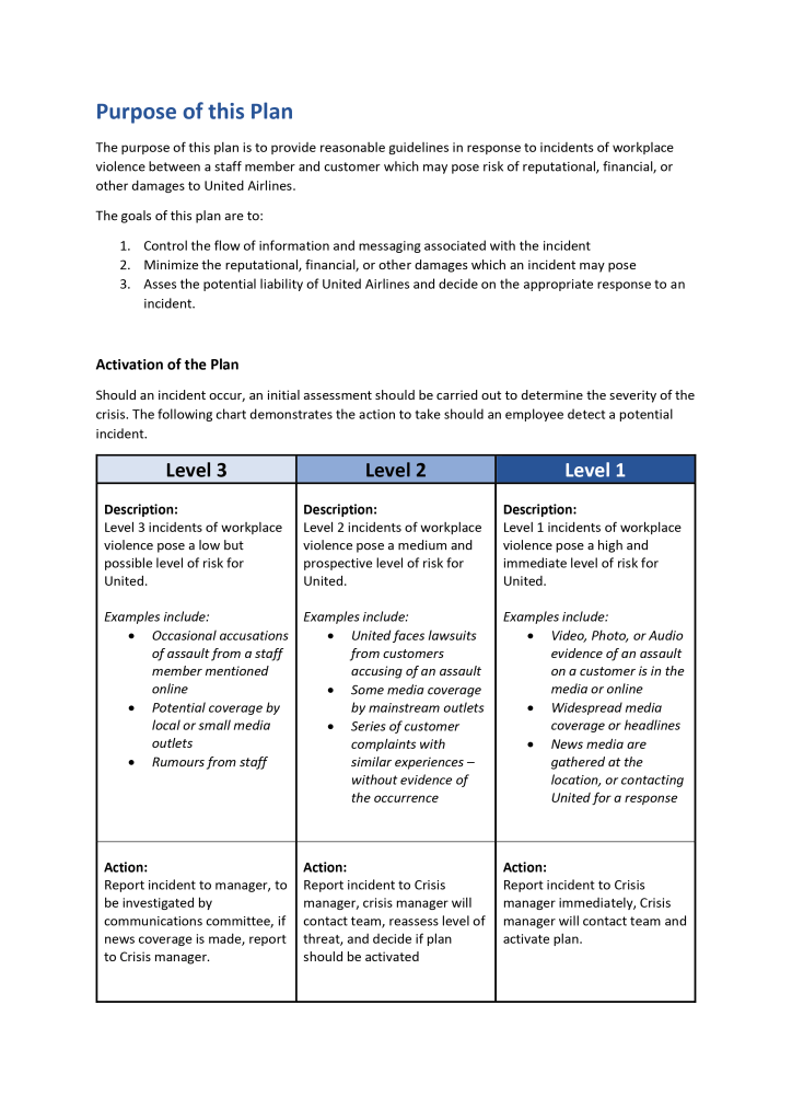 In my time at university, I attempted to create a crisis plan which United Airlines should have had in place to navigate this type of situation.